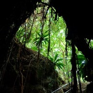 中腹よりは少し奥でしょうね、中腹より下かな、真ん中より少し下かもしらんね。山は深かったですから。上なんかは10尺、12尺くらい、……4メートルぐらい、枝伸ばしていますからね、空のほうに。だからこっち焼こうとしても焼かれないわけです、この山は。それで部隊長はよく考えていたと思いますよ。こうしたら弾が飛んでくるでしょ、ピシュピシュピシュ、木に当たるんですよ。たら、あっちに、こっちから来たらこっちに隠れる、こっちから来たらこっちに…すると、これで鬼ごっこみたいにして、弾が来たら…、穴に入らないんです。みんな横のほうから。どうしてもアメリカは300メートルぐらいからしか、自動短銃ですからね、15発出る。……だから接近ではなかったです。これ軍用犬ですよね。いつも病院のところからうろつくんですよね。