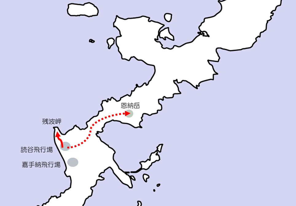 しかし実際には義烈の「最後の一人」は、平たんな海岸沿いを北上、残波岬に向かった。単に逃げ延びるため、あるいは、もしかしたら彼は恩納岳での合流ではなく、重爆撃機用滑走路を驚異的な速さで建設している「海のミツバチ」第87海軍工兵隊の拠点を目指したのかもしれない。